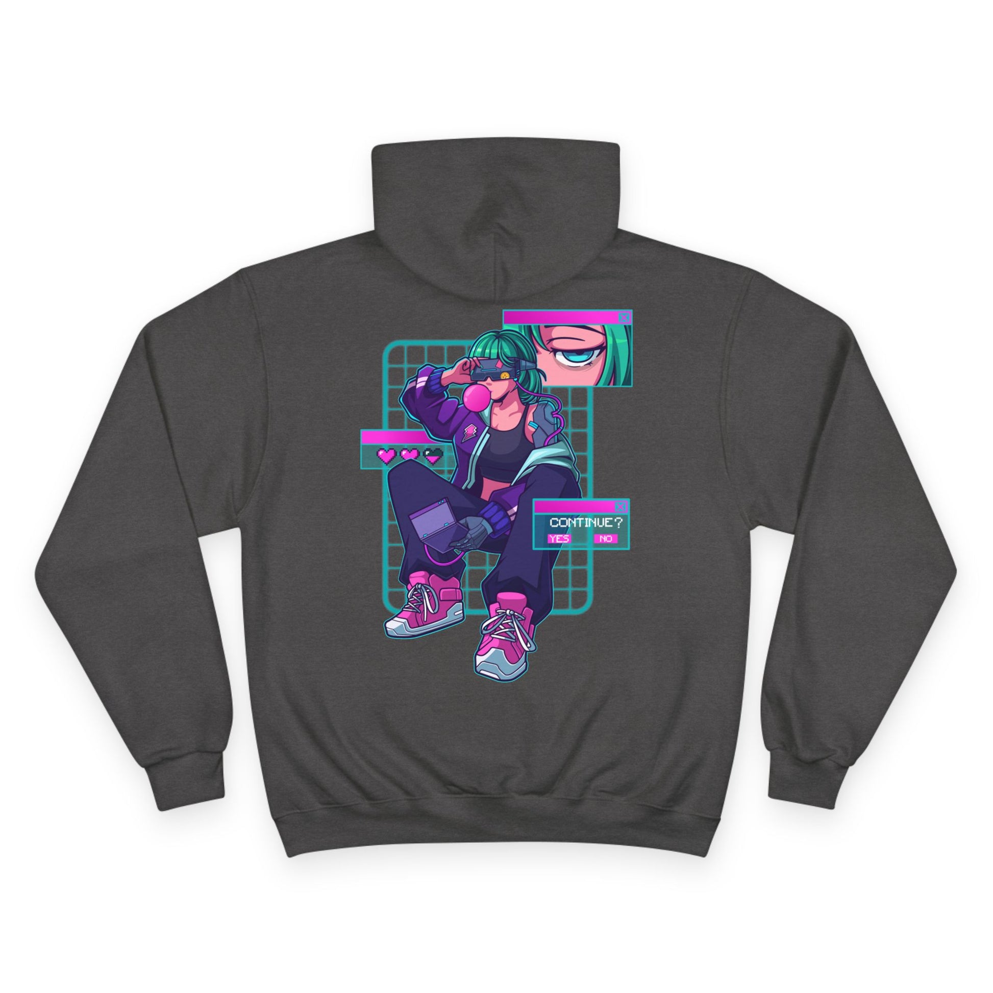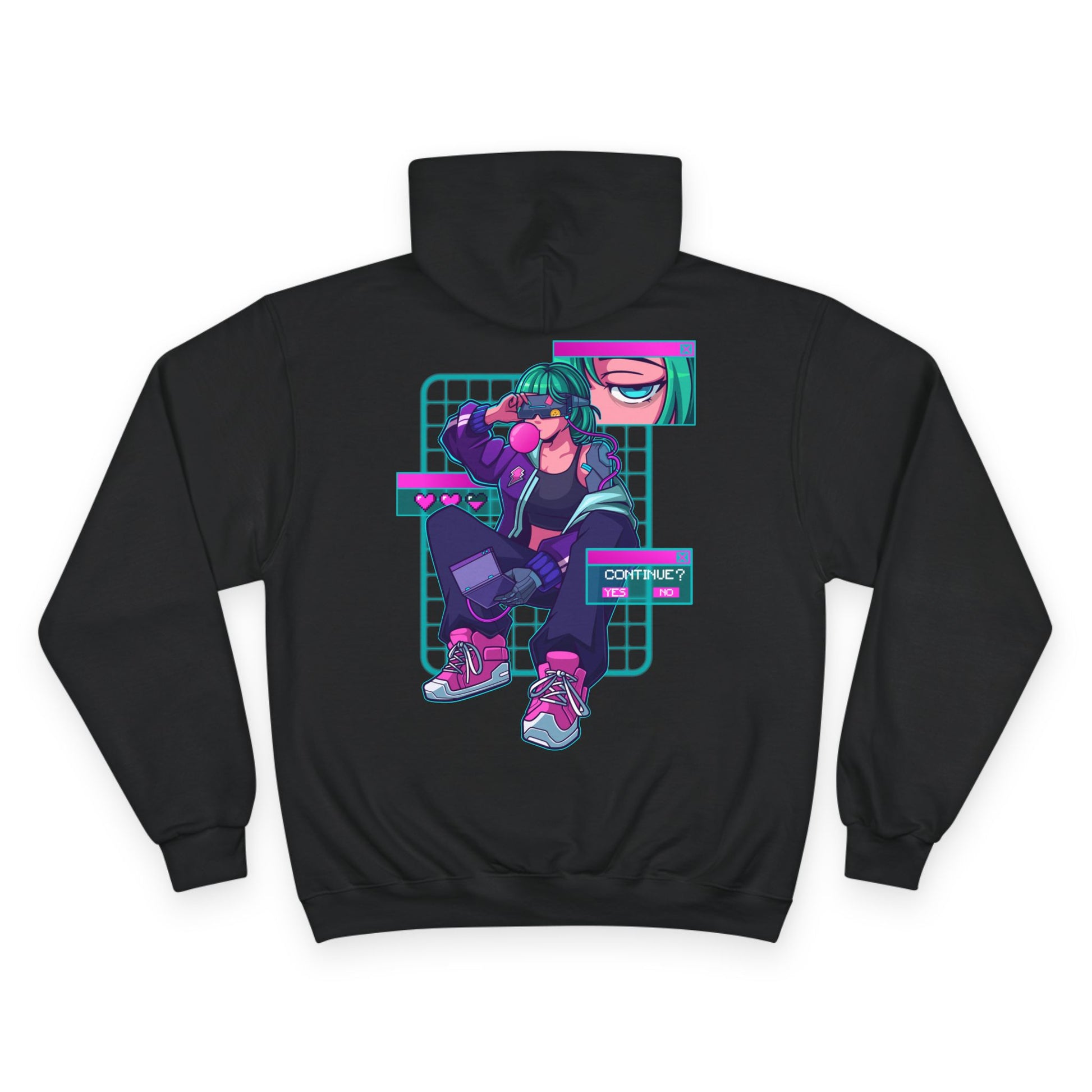 On the front, you get NTTW’s signature lightning bolt logo, rocking that unmistakable ‘90s teal and magenta colorway. Flip it over, and it's pure gamer culture—an anime-inspired gamer girl, sunglasses pushed up, two-and-a-half life hearts, and a "Continue? Yes/No" prompt. Whether you're playing late or just vibing, this hoodie’s built for it.